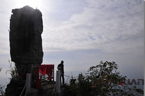 走馬鎮(zhèn)東北約五公里處,有一座山峰,峭壁上突兀一尊巨大的巖石,神似一位叱咤風(fēng)云的將軍,這就是聞名而神秘的將軍巖。