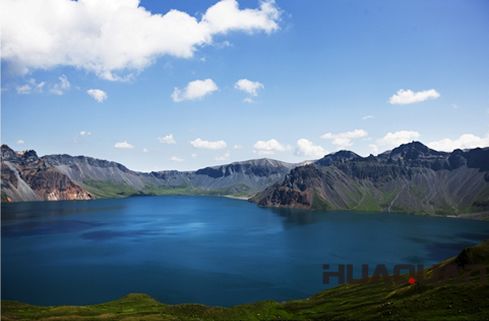 天池的面積約10平方千米,湖面呈橢圓形,長4.85千米,寬3.35千米,圍繞一周大約13千米。從空中俯瞰天池,猶如是鑲在群峰之中的一塊碧玉。關于長白山天池,還有一個美麗的傳說呢。據說,天池原本是太白金星的一面寶鏡。西王母有兩個女兒,長得的相像,外人很難說清楚姐妹倆究竟誰更漂亮。在一次蟠桃盛會上,太白金星掏出寶鏡,說,“只要用它一照,就能看到誰更美”。小女兒先接過鏡子,只照了一下便羞澀地遞給了姐姐。姐姐卻對著鏡子左顧右盼,越看越覺得自己漂亮。這時,寶鏡說話了:“我看,還是妹妹更漂亮。”姐姐大怒,當即將寶鏡拋下瑤池,落到人間變成了天池……